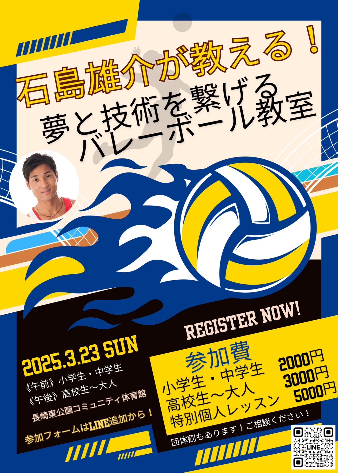 | 教室名 | 石島選手が教える! 夢と技術を繋げるバレーボール教室 |